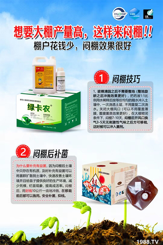 大棚的土壤已經(jīng)壞了!用再多的肥料也高產(chǎn)不了!是時(shí)候改土殺線蟲,老棚變新棚了!燜棚是一種簡(jiǎn)單有效的農(nóng)業(yè)防止措施,能夠從土壤本質(zhì)入手,從根本上解決問(wèn)題,從而達(dá)到理想的防治效果。