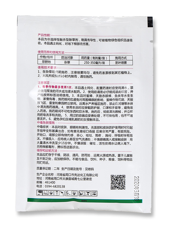 1、在雜草旺盛期施藥,注意噴霧均勻,避免藥液漂移到其它植物上。2、大風天或預計1小時內降雨,請勿施藥。