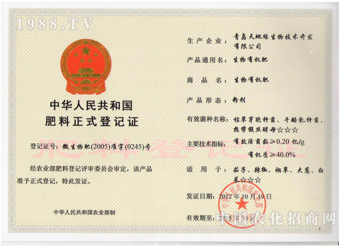 目前主要開發(fā)的系列產品有:“天緣活菌母露Ⅰ型(多種組合配方:有機物料發(fā)酵劑專用菌種)”、“天緣活菌母露Ⅱ型(生物沖施肥、葉面噴施肥)”、“眾和生物有機肥”三大系列十多種產品。對改良土壤、修復生態(tài)、還原生態(tài)、提高作物品質、提高土壤的綜合地力、提高作物產量、降解化學殘留、緩解連作障礙效果顯著。產品于2005年國家正式批準登記。2003年被審定為“青島高新技術產品”和“青島市高科技企業(yè)”。